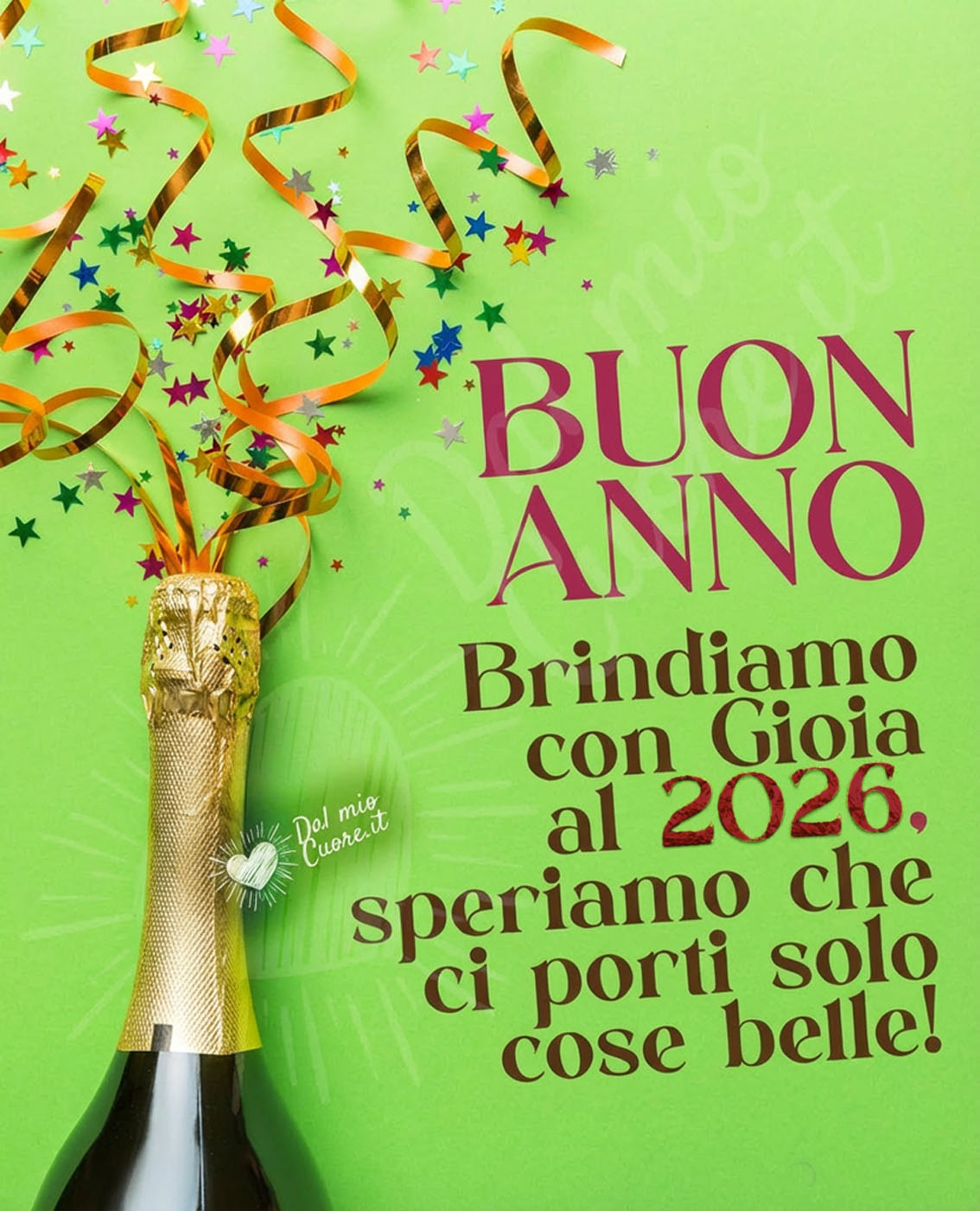 Augura un nuovo anno in maniera originale o divertente e augura il meglio ad amici, parenti e conoscenti, con le nostre immagini, i nostri video e le nostre GIF Animate. Le nostre bellissime frasi di Auguri di Buon Anno renderanno il tuo messaggio originale e speciale. I tuoi amici apprezzeranno il tuo stile rendendo il tuo bellissimo augurio molto gradito. Se vuoi semplicemente augurare un Buon 2026 clicca qui.