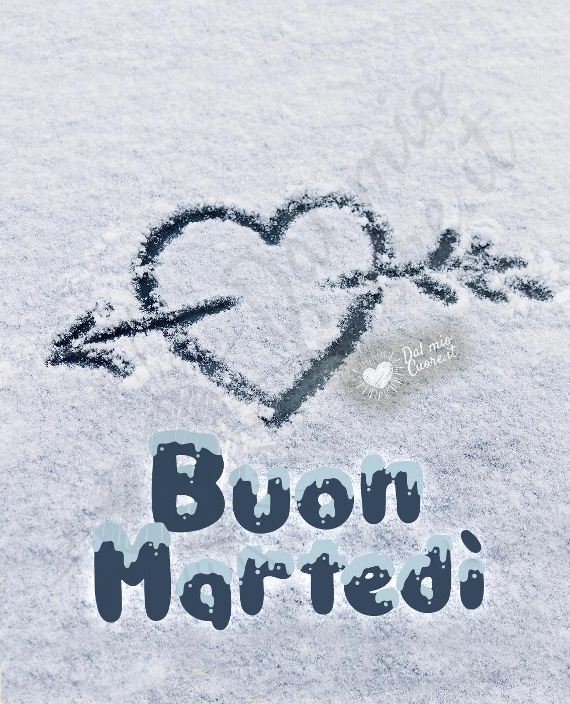 Tra fiocchi di neve e fiocchi di raso, questa immagine di buon martedì regalerà un sorriso a chi la riceverà.